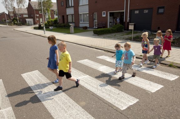 Met het Voetgangersbrevet Brons leren kleuters oversteken op een zebrapad. Omdat aan een zebrapad ook vaak verkeerslichten staan, oefenen we dat specifiek in met deze praktijkles.
