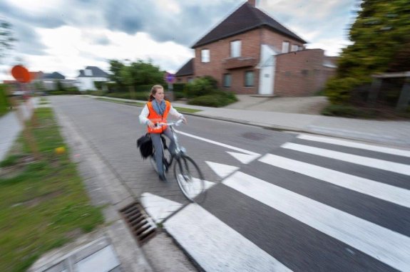 Leerlingen van de 2e graad leren hoe ze met de fiets op de juiste manier moeten oversteken aan onder meer een zebrapad, een fietsoversteekplaats, verkeerslichten of een overweg.