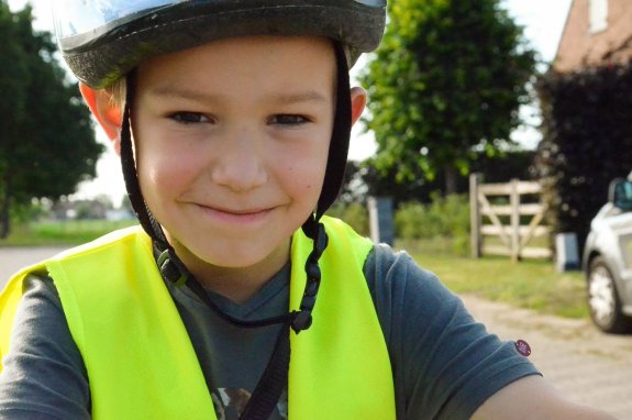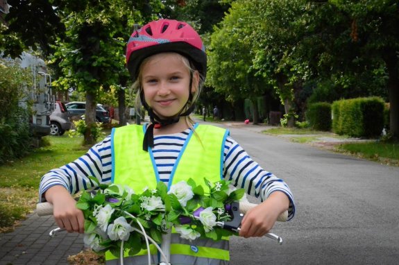 Met o.a. een zoekplaat, zoek de verschillen, tel de kledingstukken en een memory leren de kleuters op een interactieve manier het nut van een fluohesje en een fietshelm begrijpen.