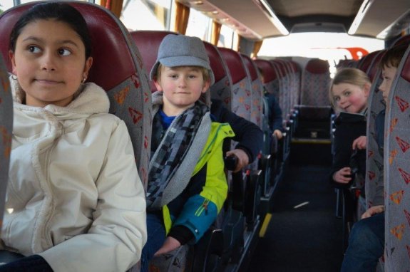 Via onder meer een rollenspel en een kringgesprek leren leerlingen hoe ze gebruik moeten maken van het openbaar vervoer en hoe ze zich het best kunnen gedragen op de bus of de trein.
