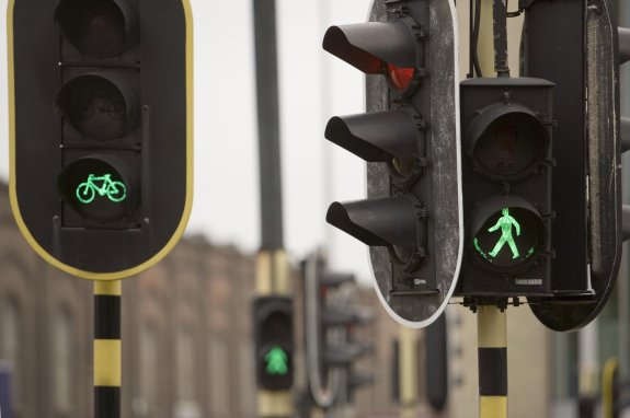 Leerlingen leren hoe ze correct moeten oversteken bij verkeerslichten, al dan niet met middenberm. Eerst in de klas, dan op de speelplaats en ten slotte in het echte verkeer.