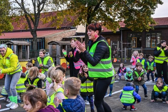 - Het dansje van Helm Op Fluo Top inoefenen en met de school voorstellen aan de ouders. Iedereen met een fluohesje mag komen.