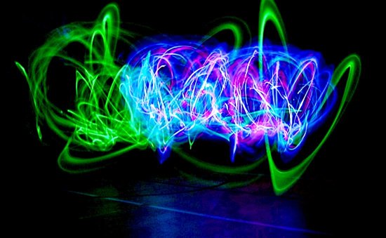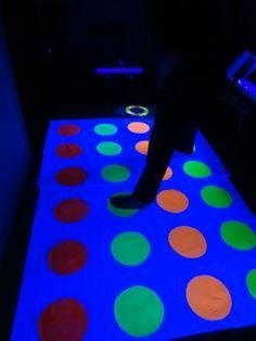 - Fluotheater: maak met zwarte doeken een 'muur' van ongeveer 1 tot 1,50 meter hoog. Zet de blacklight achter de 'zwarte muur'. Maak met het fluomateriaal poppetjes zoals poppetjes van een poppenkast. Zet je achter de 'zwarte muur' en doe het licht uit en blacklight aan. Als je nu poppenkast speelt geeft het een sjiek effect.