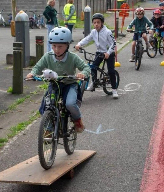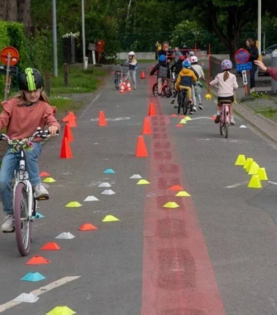 Tijdens de sessie werken leerlingen aan hun evenwicht, stuurvaardigheid en verkeersinzicht. Zo bouwen ze stap voor stap meer vertrouwen op de fiets op.