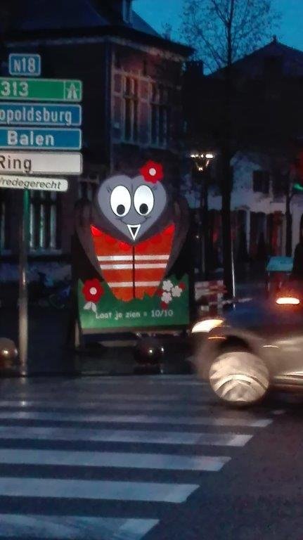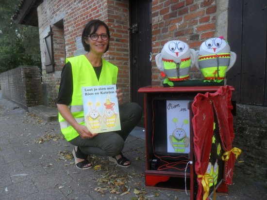 "Mijn gemeente Mol schenkt aan elk eerste leerjaar van onze gemeente een exemplaar van Laat je zien met Rien en Katrien" vertelt Lut niet zonder trots. "Ook heb ik in samenwerking met onze gemeente een grote ‘Katrien’ gemaakt, voorzien van reflecterende materialen die goed zichtbaar zijn in het verkeer. Het zou natuurlijk tof zijn mochten andere scholen ook werken met het boek!"