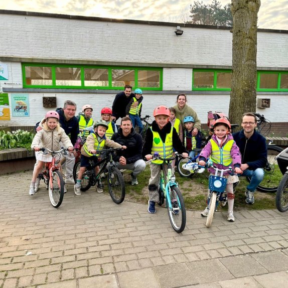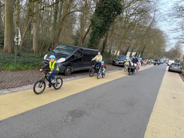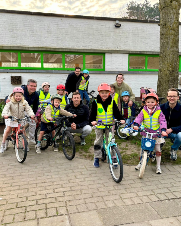 “Onze fietsbus is een initiatief van Sven Stevens, papa van 2 kindjes hier op school”, vertelt directeur Joceline Vanheste. “Hij zag het initiatief op Intsagram, abonneerde zich op het idee en ging dan zelf aan de slag: hij legde het concept voor aan de ouderraad en enkele bevriende ouders, en die waren meteen enthousiast. Uiteindelijk kwamen ze mekaar toch al vaak tegen op de fiets onderweg naar school. Wij hebben echt geluk met onze sterke ouderraad.”