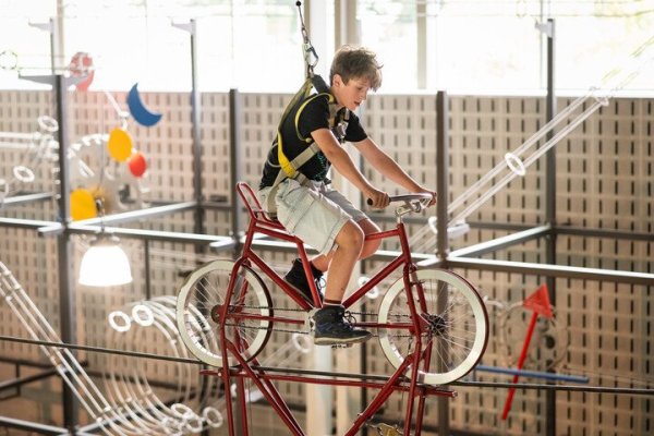Je zit veilig vast in een harnas en fietst op een kabel op 5,2 meter hoogte – eerst achteruit, dan vooruit. Dankzij het slimme zwaartepunt blijf je perfect in evenwicht, ook als je wat scheef hangt. De wetenschappelijke uitleg achter dit evenwichtsexperiment vind je op app.technopolis.be.