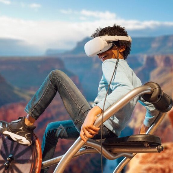 Zet een VR-bril op, spring op de fiets en rij virtueel door een berglandschap. Spannend én leerrijk tegelijk!