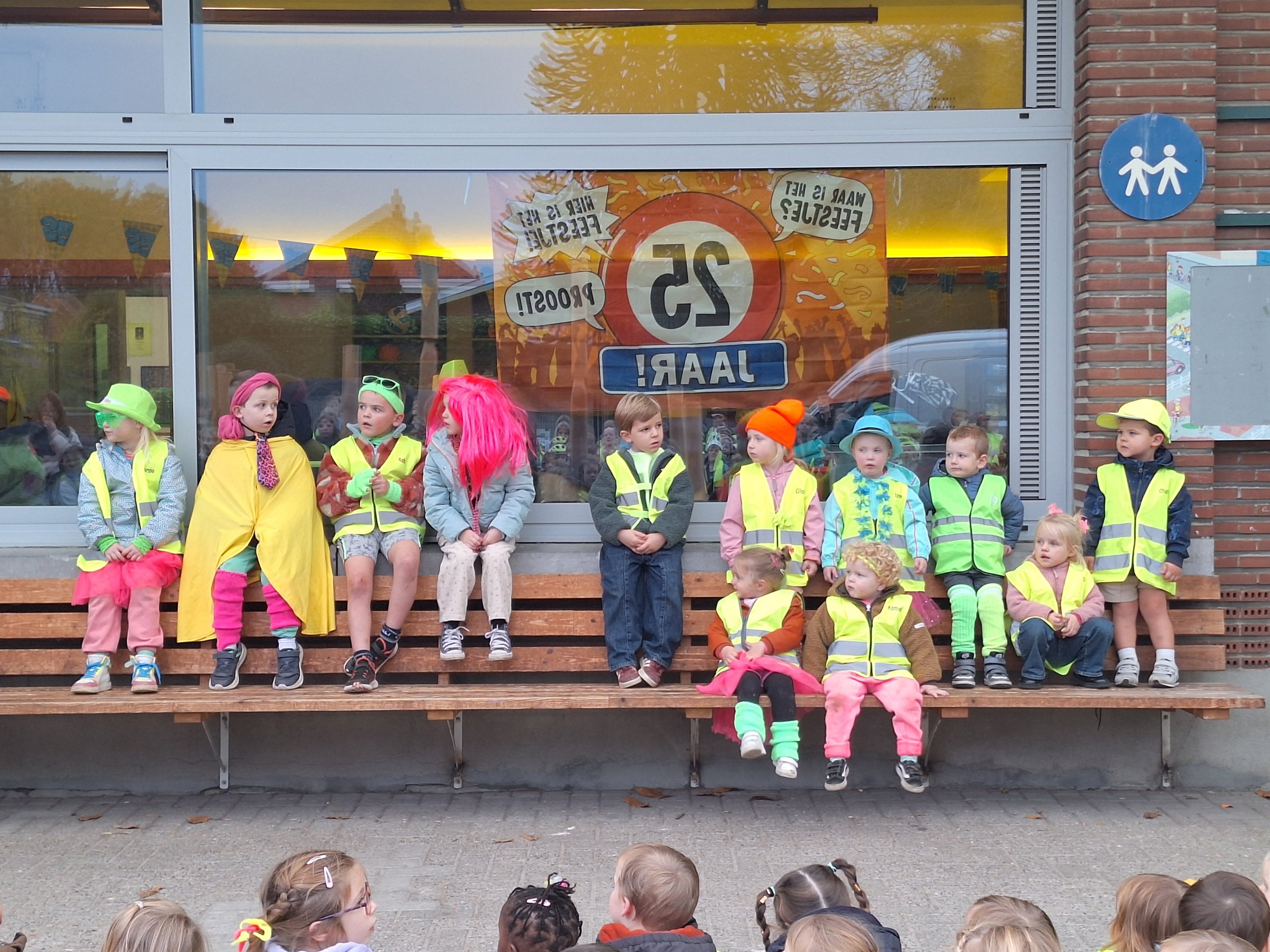 De Vrije Basisschool Sint-Bernardus van Bornem viert 25 jaar verkeerswerking op school. Dit jubileum leek juf Viviane, trekker van de werkgroep verkeer, het ideale moment om de verkeershelpers in de bloemetjes te zetten. Ze maakten er een feestelijke (fluo)dag van.